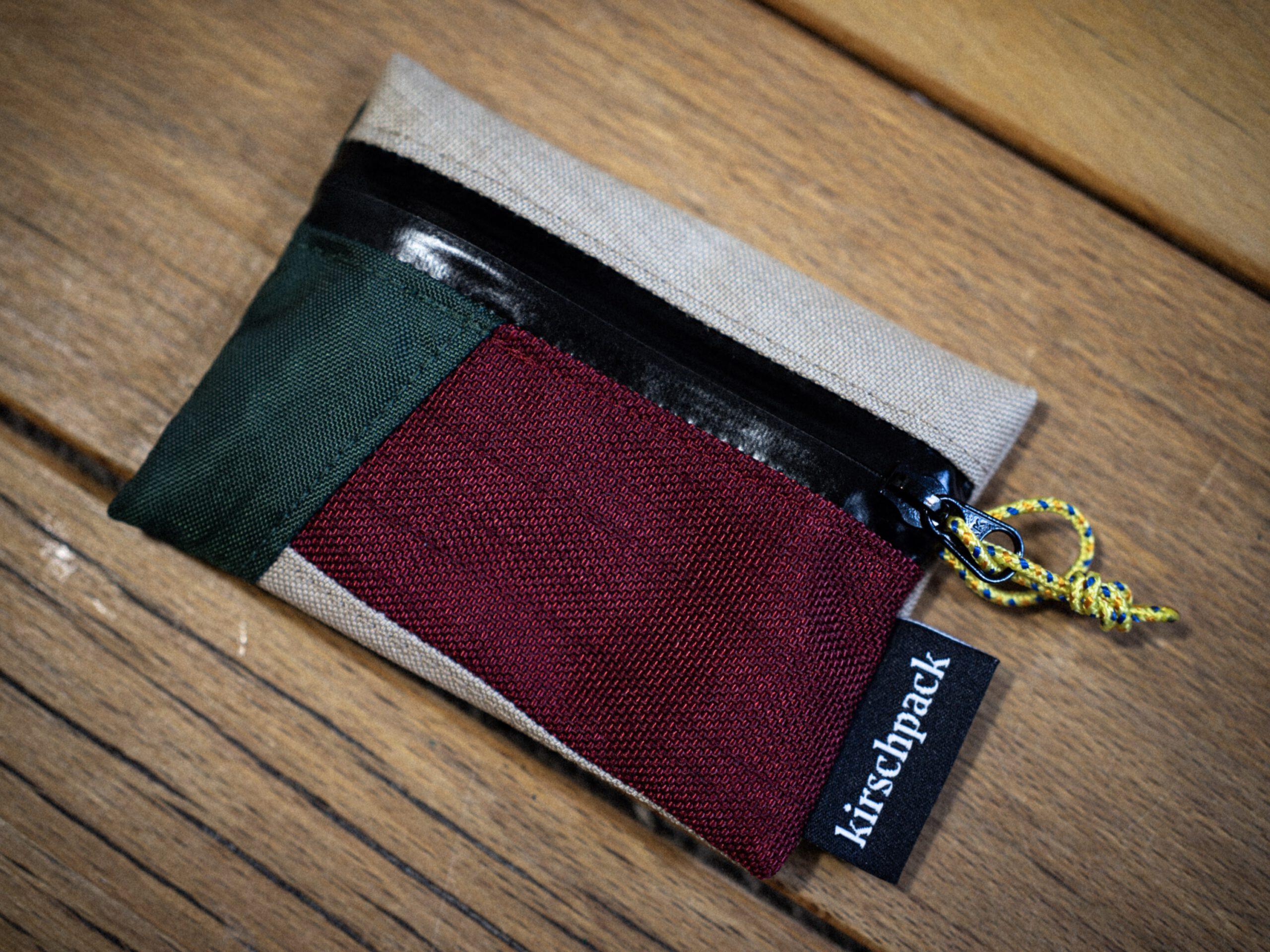 Kleines Portemonnaie für unterwegs. Zum Beispiel auf Fahrradtour oder fürs nächste Festival. Es passen perfekt ein Perso und ein paar anderen Karten zusammen mit ein bisschen Bargeld oder einem Schlüssel in die Tasche.